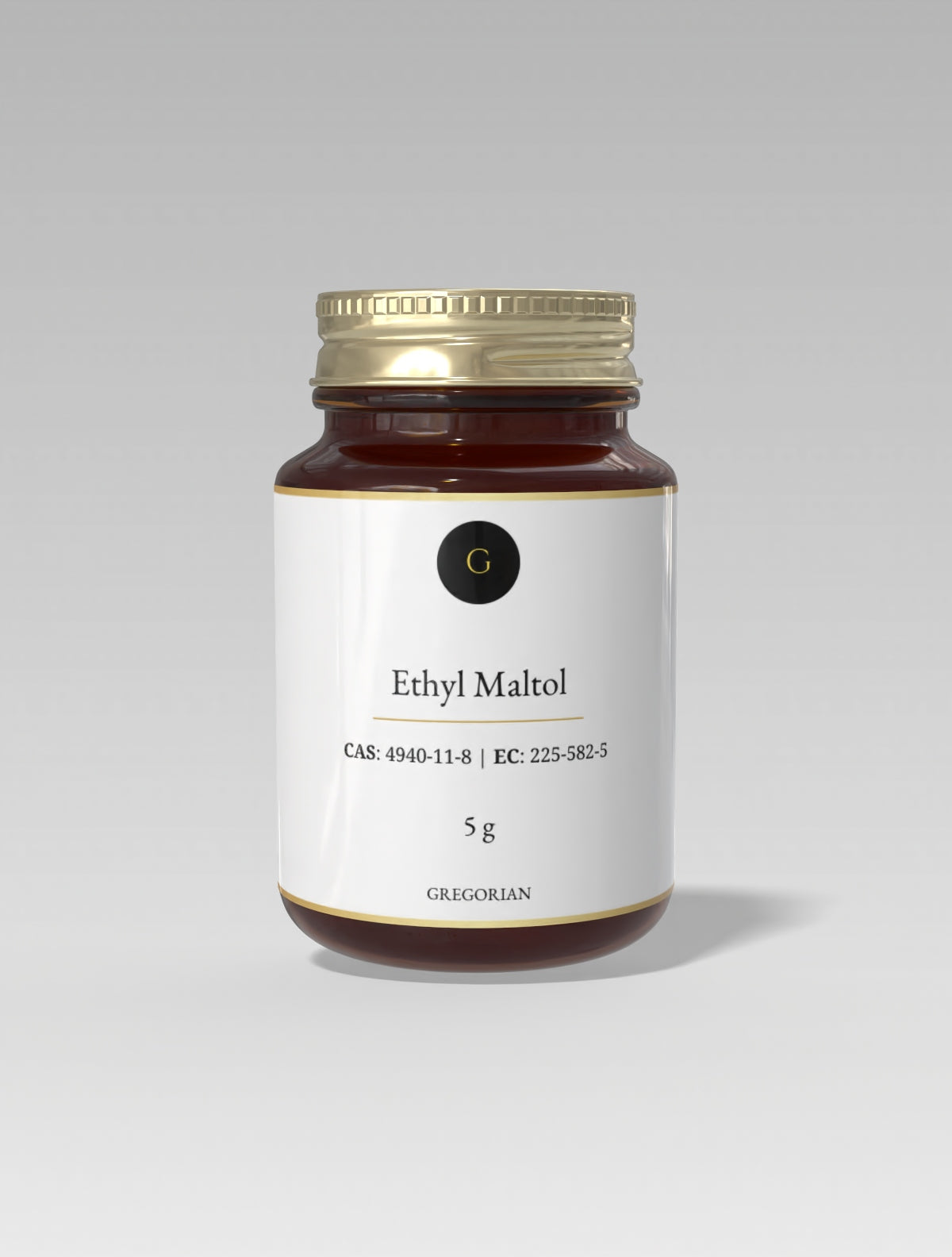 Primul lucru la care te gândești când spui Ethyl Maltol este zahărul, atât prin miros, cât și vizual, prin textura sa de pulbere cristalină albă. Amintește de vata de zahăr, caramel și dulceață de căpșuni, oferind o dulceață intensă și catifelată. De 4–6 ori mai puternic decât Maltol, este utilizat pe scară largă pentru a adăuga căldură și rotunjime compozițiilor gurmande, fructate și vanilate. În doze mici intensifică aromele de vanilie, prăjitură, căpșuni sau alte fructe de pădure, îmbogățind totodată notele fructate și florale.